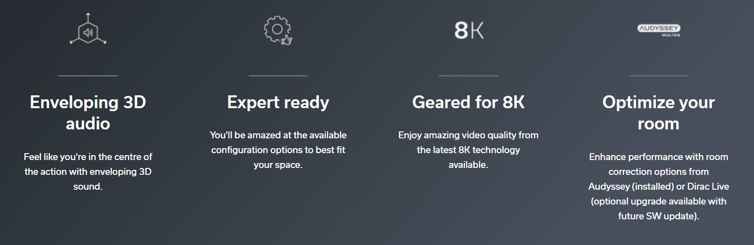 Get enveloped in sound with Dolby Atmos®, DTS:X®, IMAX Enhanced and Auro-3D, along with Dolby Surround, DTS Neural:X and Auro-Matic upmixer to optimize legacy content.
